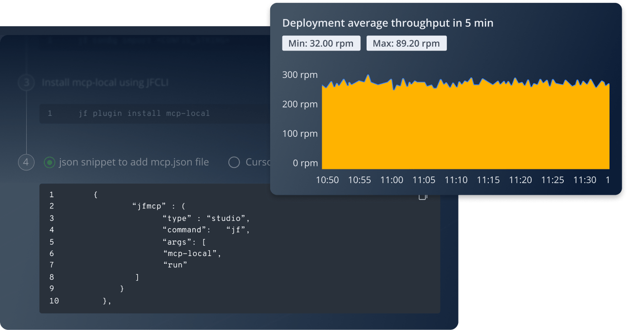 Use a secured AI Gateway for simple one-click deployment of models, fast connection to APIs, and single-line configuration of MCP servers, accelerating the path from discovery to production.
