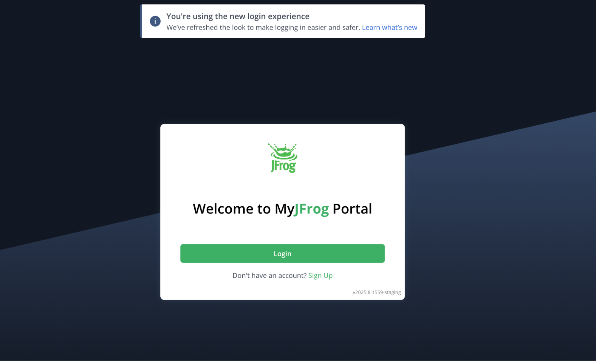 Starting September 15th, 2025 – MyJFrog users will encounter a redesigned login interface (See below). During this transition, MyJFrog flow will remain largely unaffected, and the existing credentials should continue to work as usual on the new login page.