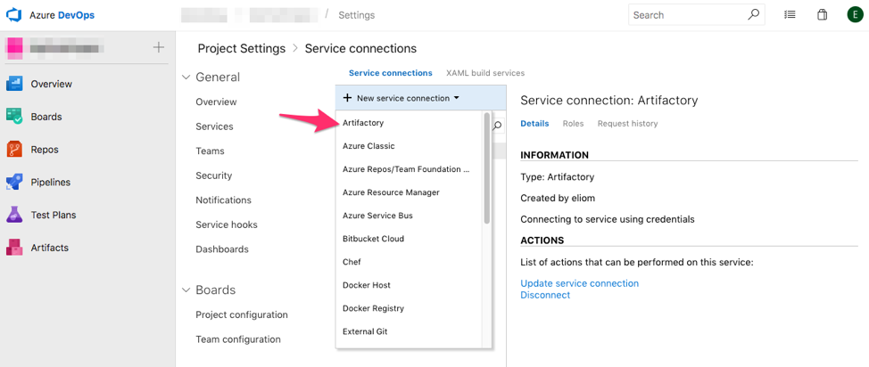 To add Artifactory to Azure DevOps: