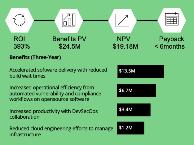 Using the JFrog Software Supply Chain Platform, teams have shrunk time to market, reduced wait times, and improved software supply chain security, enabling their organizations to deliver greater business value. How much value? This commissioned study conducted by Forrester Consulting on behalf of JFrog, examines the potential return on investment (ROI) that organizations may realize by deploying the JFrog Software Supply Chain Platform.
