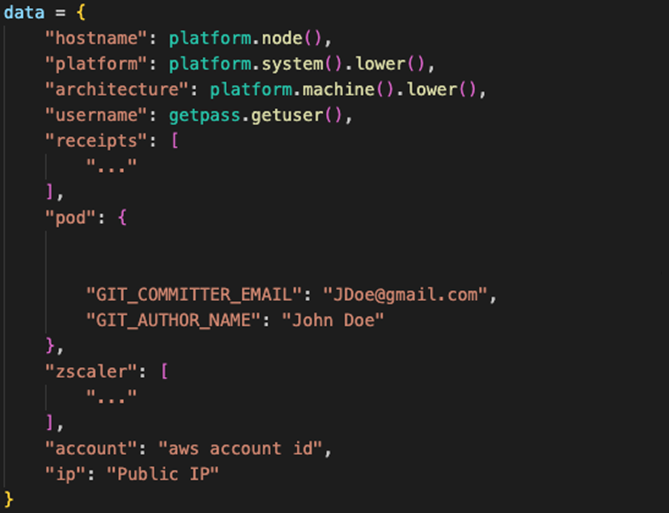In this case, the malicious package distinguishes itself from typical information stealers through its highly targeted approach and multi-stage execution. Unlike many malicious packages that indiscriminately target users, this malware specifically focuses on corporate and cloud environments, aiming to exfiltrate sensitive information like JAMF receipts, CI/CD metadata, cloud account IDs, and Zscaler configurations.