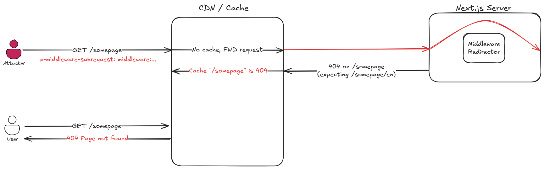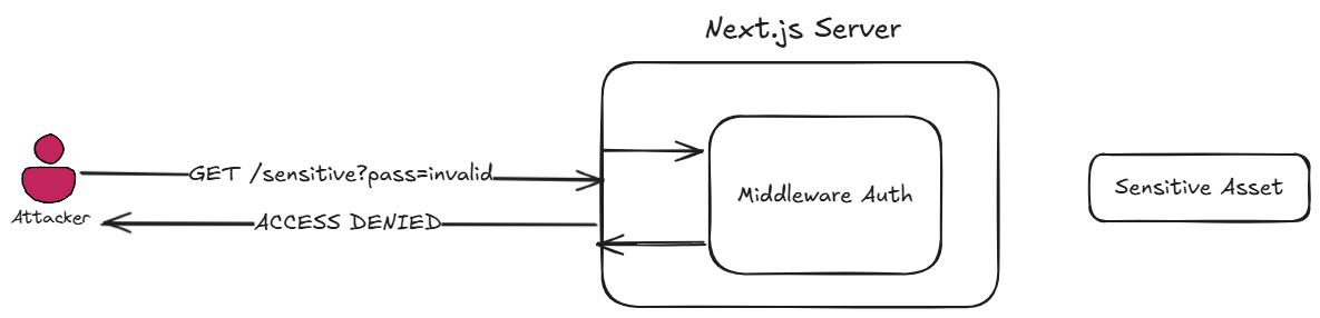 This scenario is relevant when the victim Next.js server uses the Middleware feature to perform authorization (and the underlying application doesn’t use any other authorization layers).