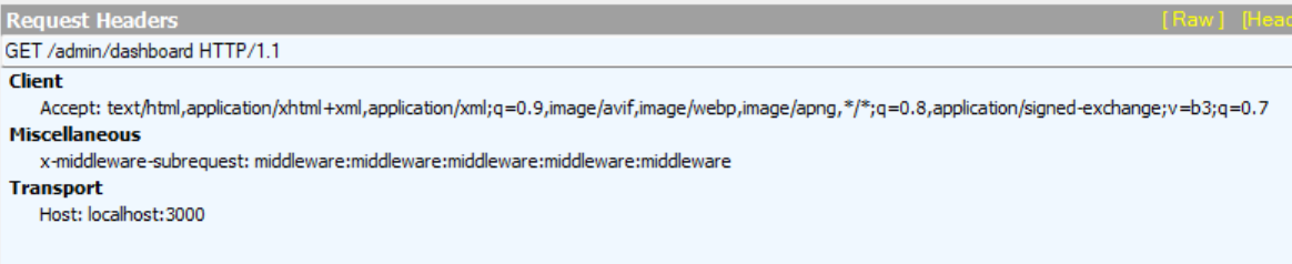 For example, if we had been using a Next.js version prior to 12.2 with our PoC code, we would have needed to move middleware.js to the pages directory and rename it _middleware.js, and our “malicious” HTTP request would be: