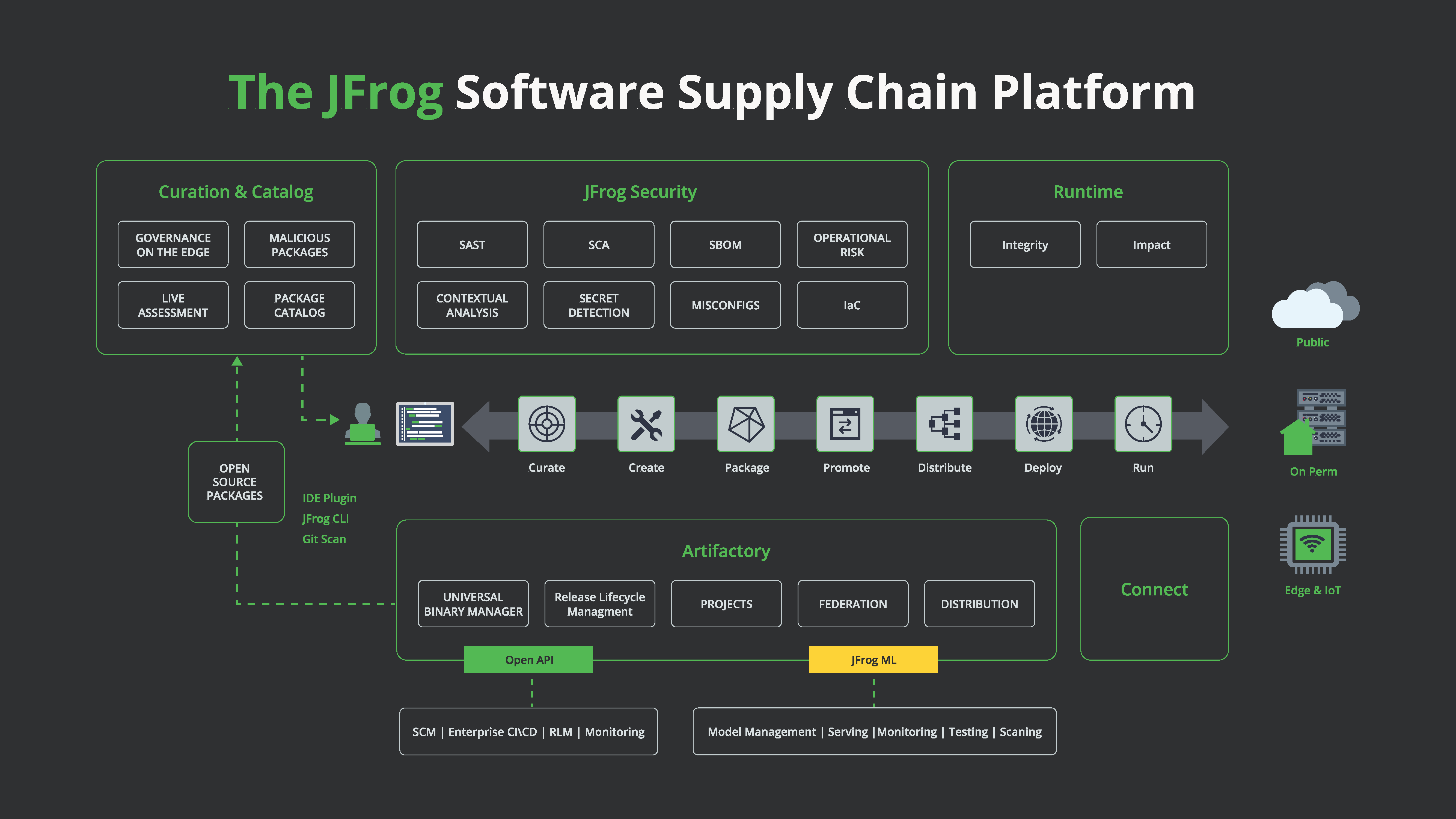 The JFrog Platform provides security and compliance verification at every stage of the SDLC