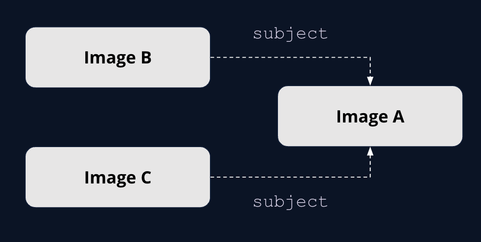 Let’s say we have an image called Image A. Two other images, Image B and Image C, are related to Image A. To define these relationships, we can use the subject field to point both Image B and Image C to Image A.