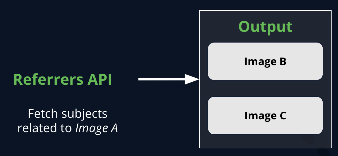 With Referrers API, you’ll retrieve that Image B and Image C are related to Image A.
