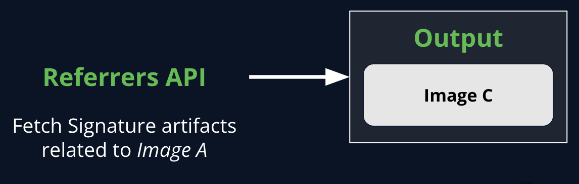 Using Referrers API, you can retrieve signature artifacts related to Image A, and Referrers API will correctly state that Image C as a signature related to Image A.