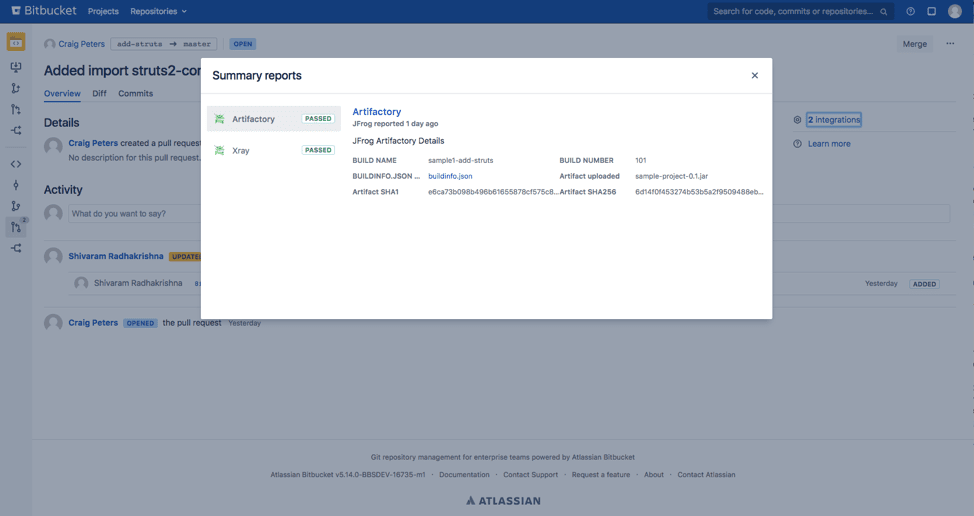 Artifactory and Xray Summary Reports in a Bitbucket Pull Request