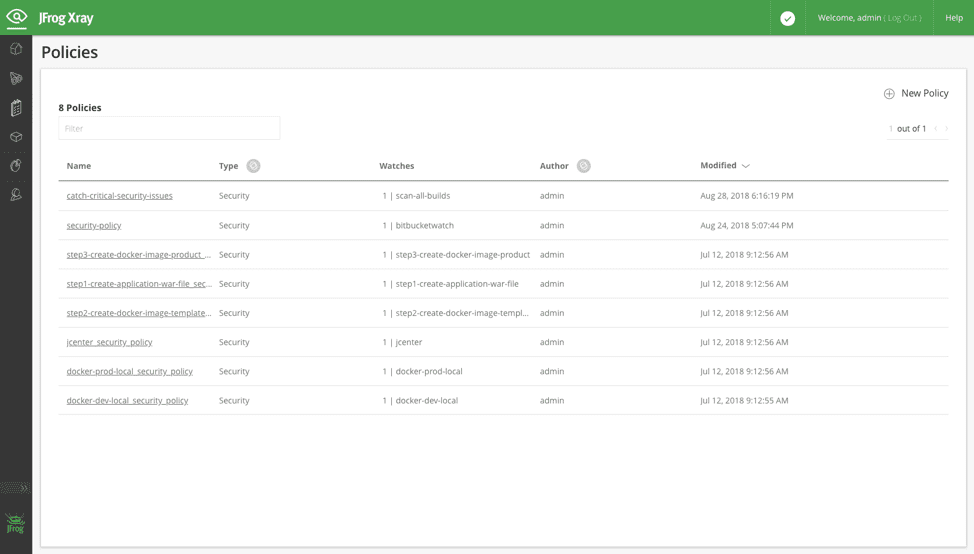 With JFrog Xray you can create policies to provide visibility or control of the flow of packages through your pipelines.