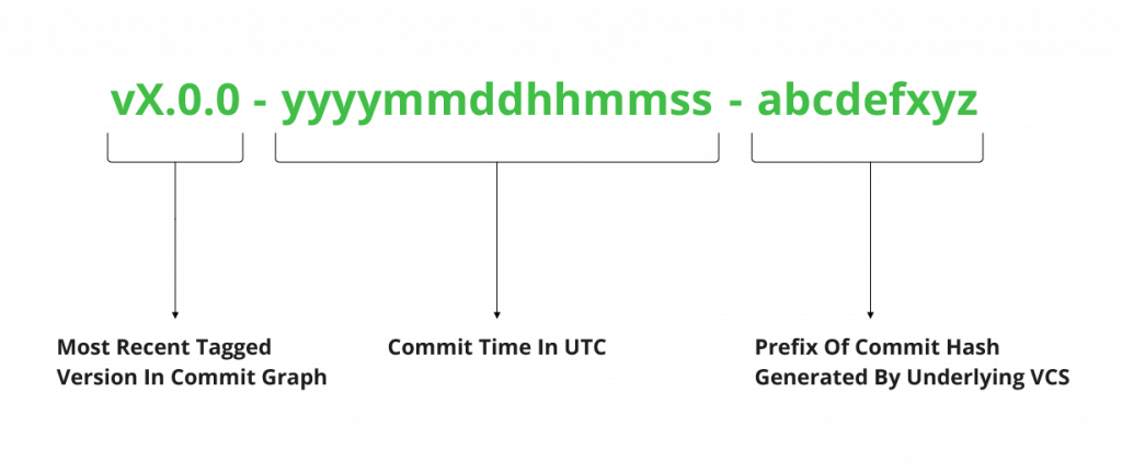 - vX.0.0-yyyymmddhhmmss-abcdefxyz when no earlier versioned commit with an appropriate major version before target commit