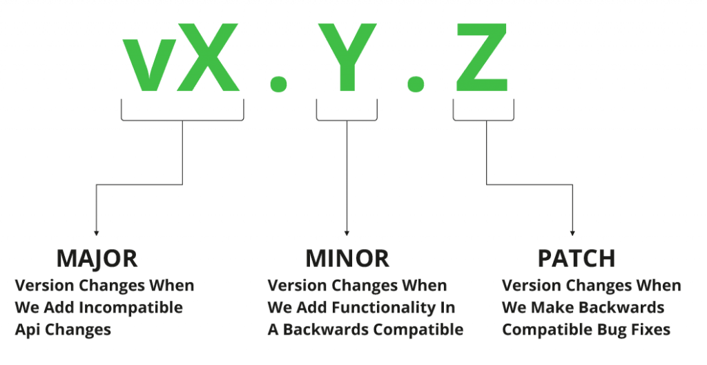 A Go module version is assigned by tagging its revision in the underlying source repository. The go command uses semantic versioning of the standard form vX.Y.Z to describe the module version. The version number changes based on the changes made in the API :
