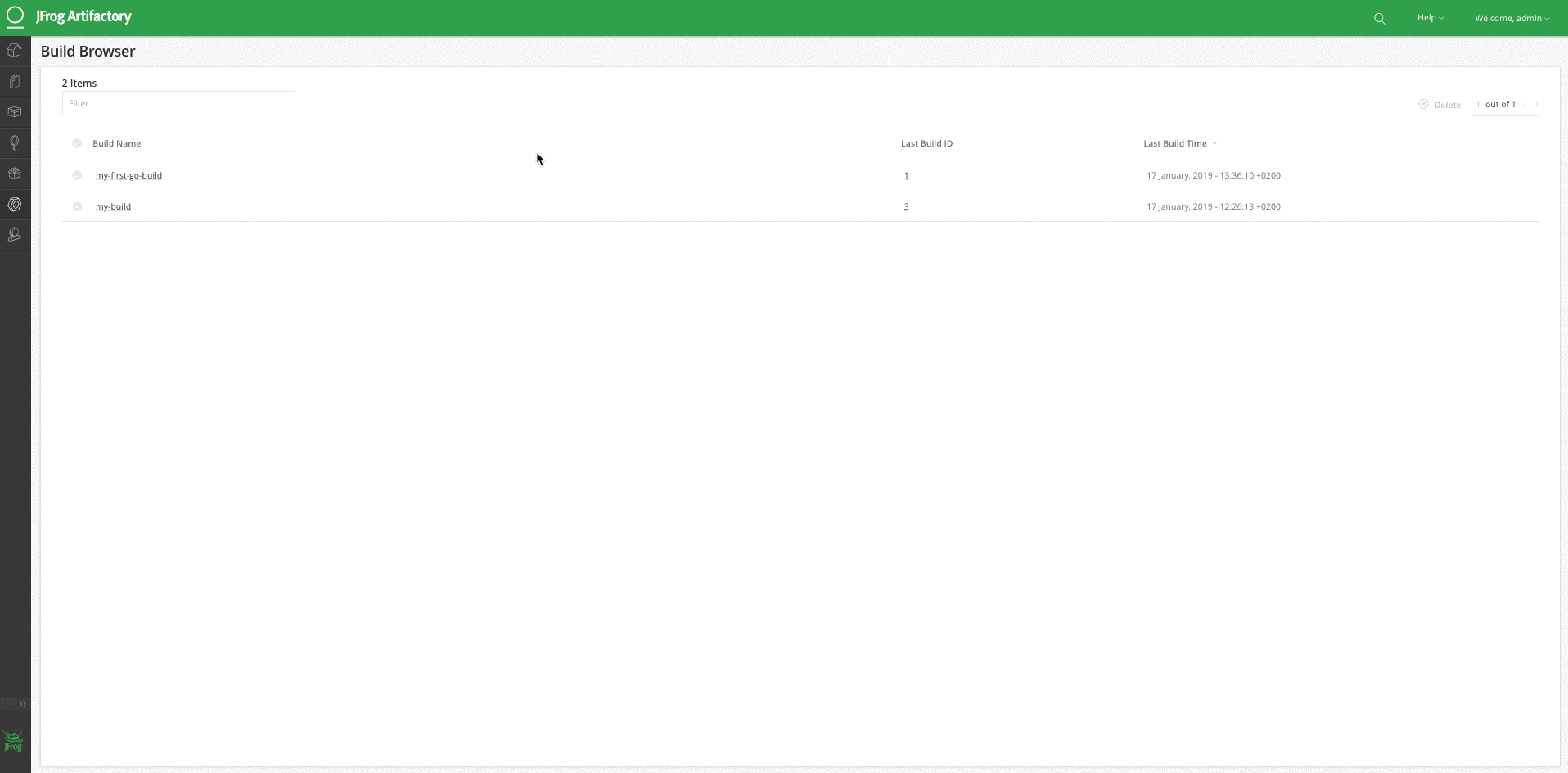 $ jfrog rt go build go --build-name=my-first-go-build --build-number=1