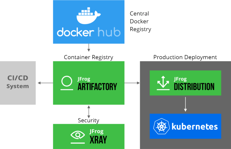 Mit JFrog Artifactory als Registry für die Speicherung der images, die in Ihre Produktion einfließen, erhalten Sie verschiedene Vorteile, darunter: