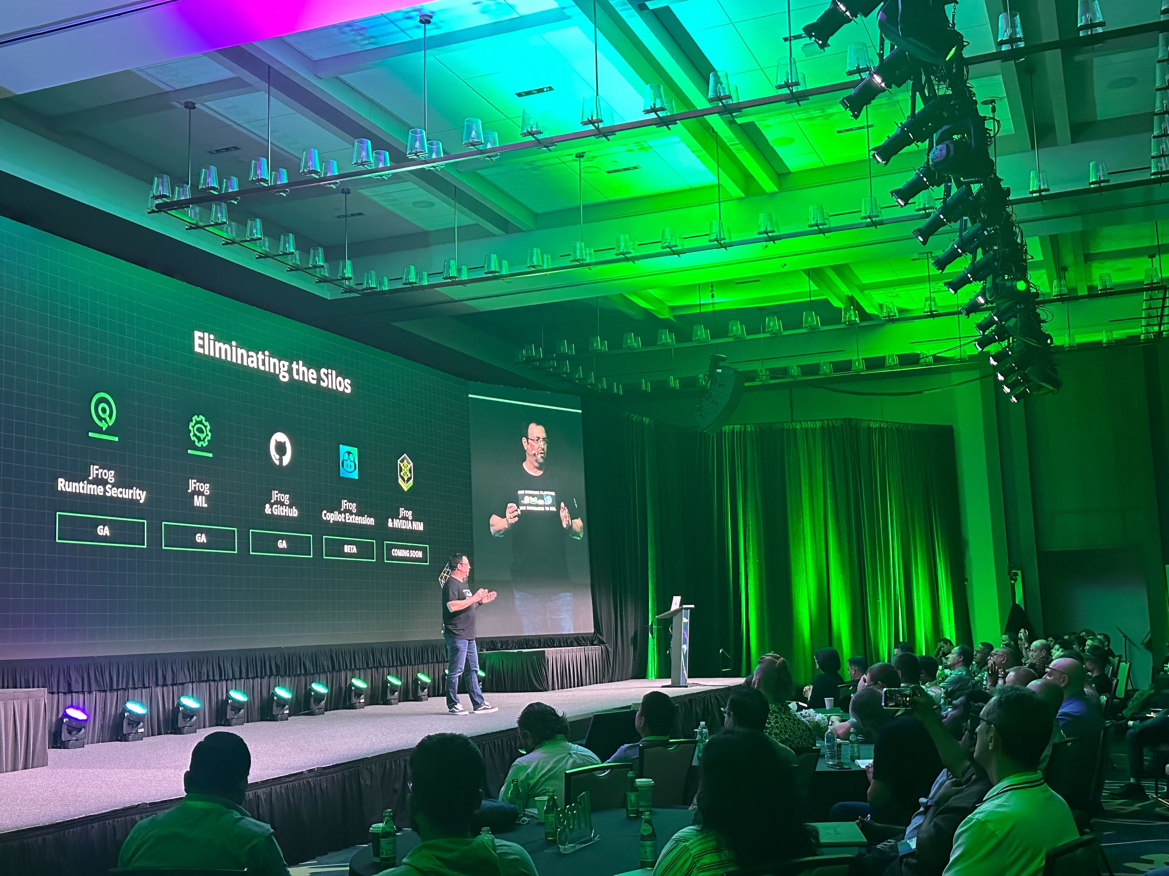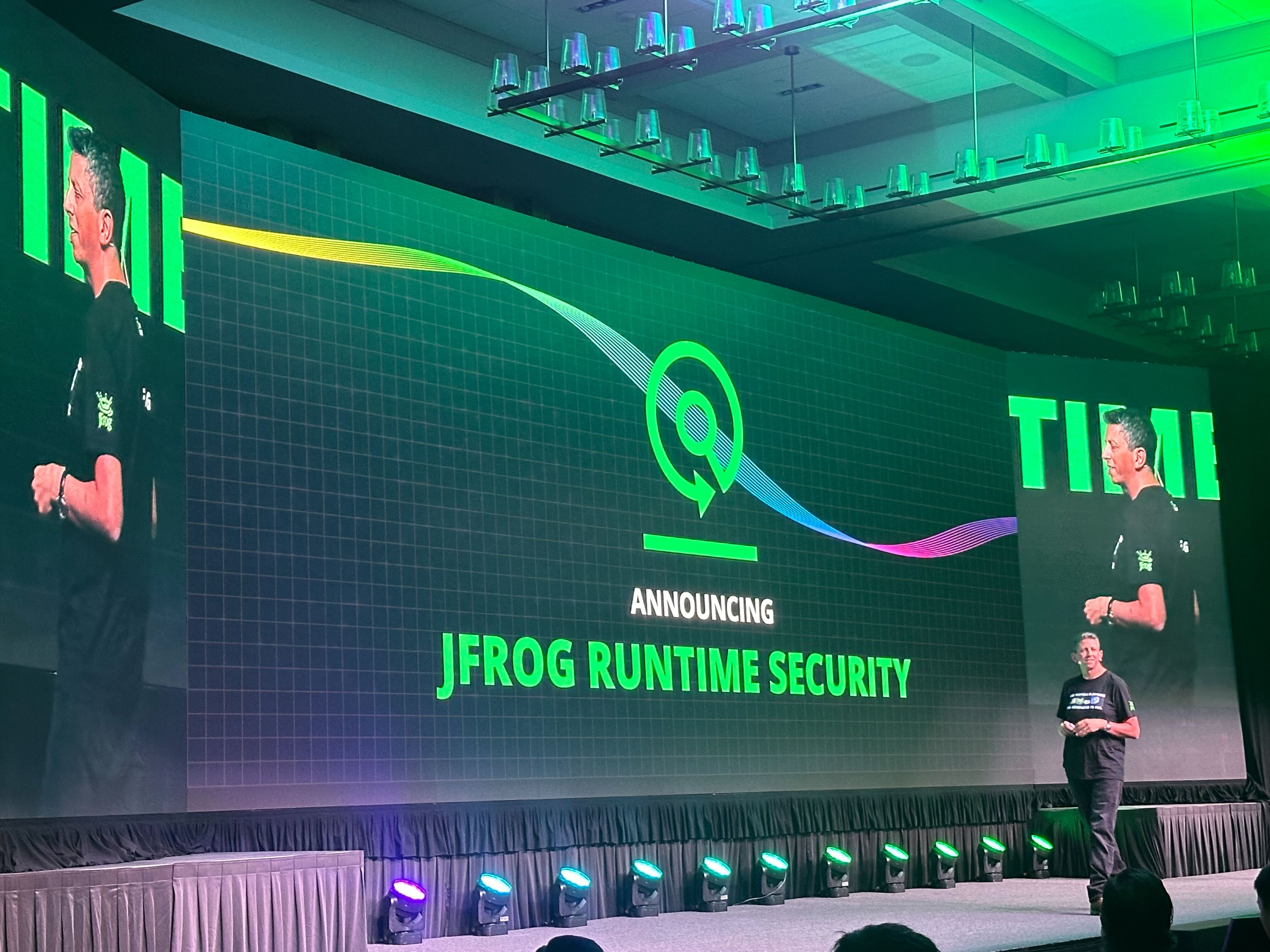 - Yoav Landman returns to the stage: “I hope you’re as excited as I am about JFrog Runtime Security — this blind spot has now been cleared up.”