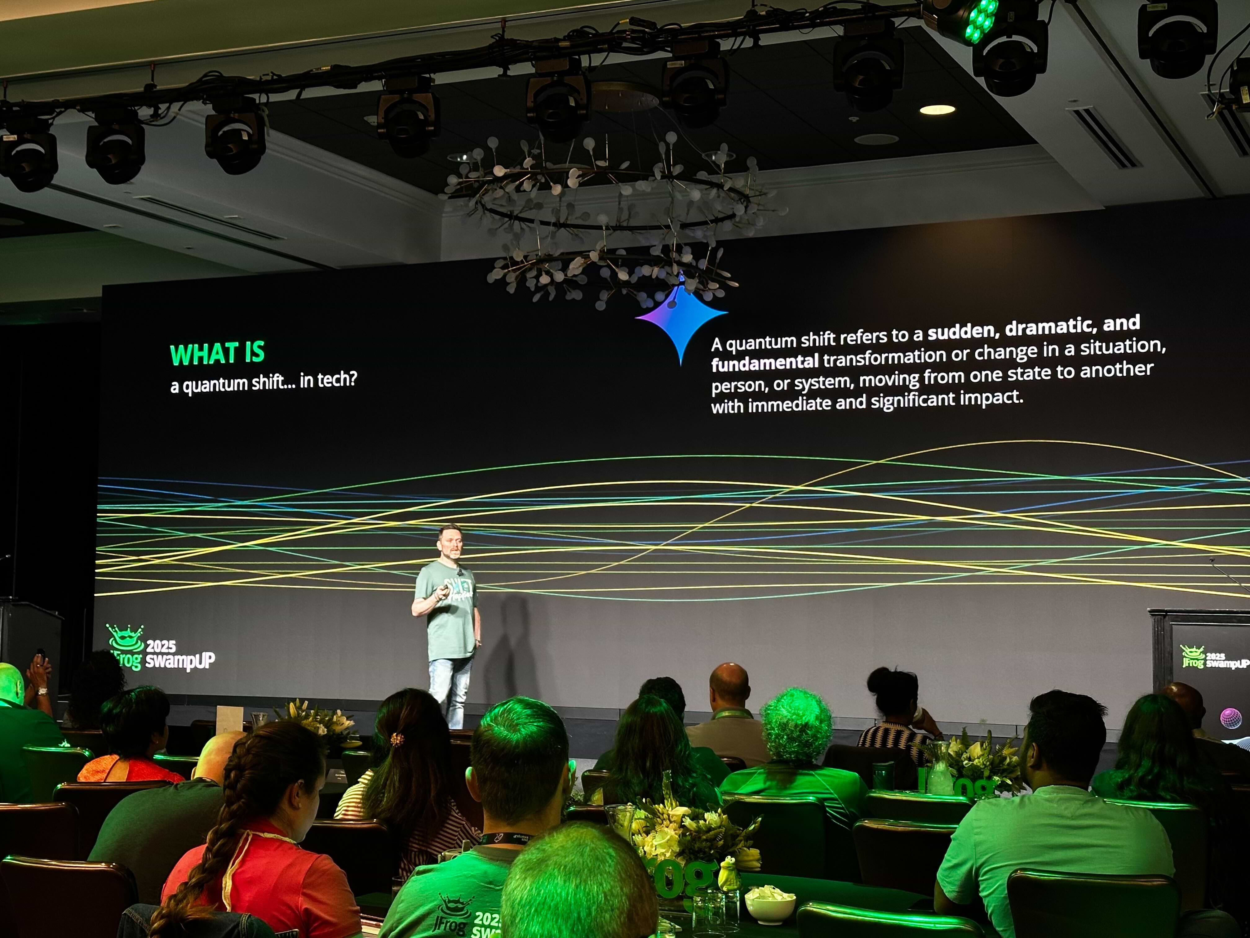 - Welcome to Day 2 of swampUP 2025! Day 2 is all about the practical application of EveryOps’ quantum shift across our industry. First up on the keynote stage this morning: JFrog Vice President Product Marketing, Jens Eckels.