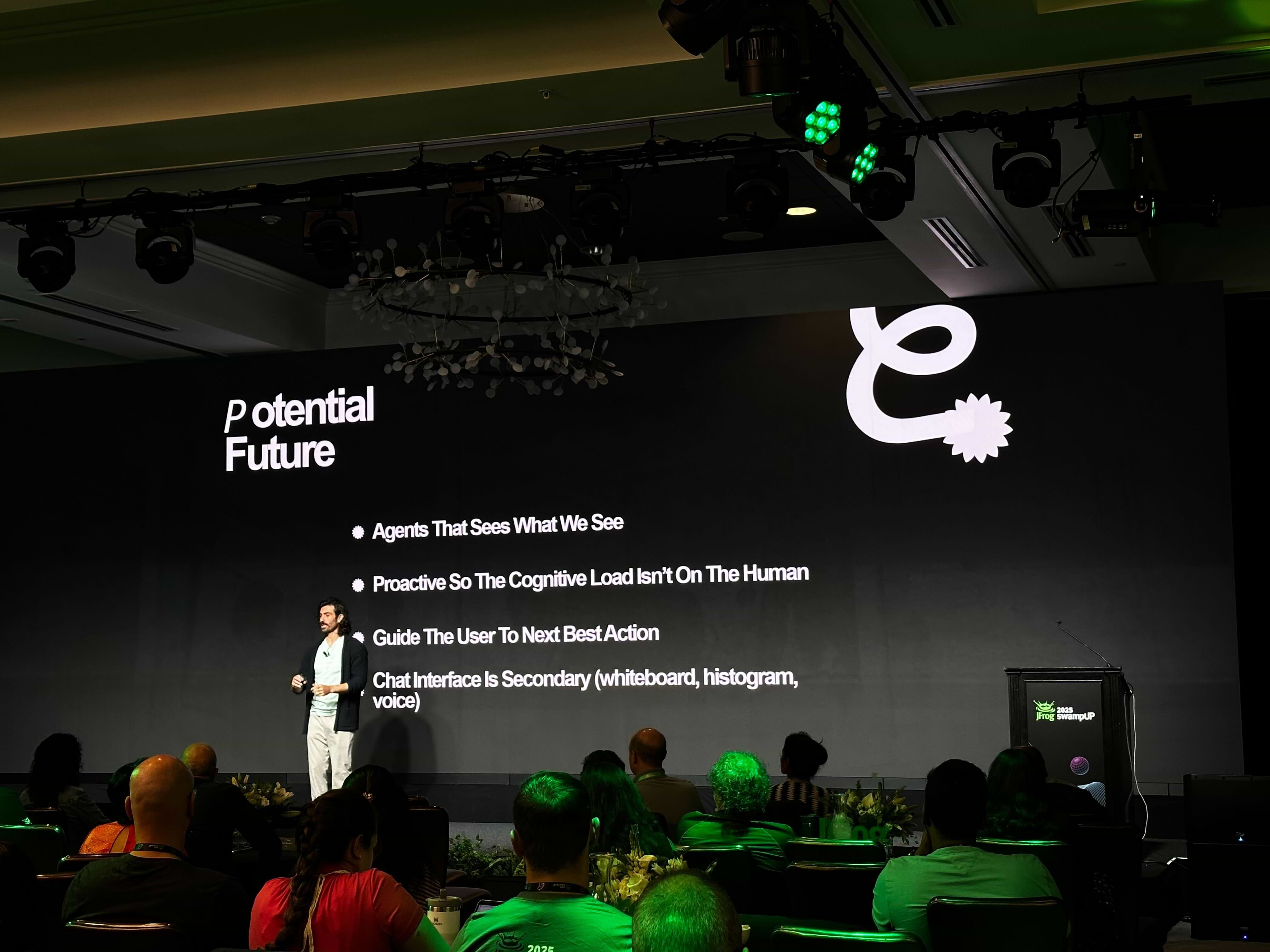 - As Shlomi wraps up his illustration of 2030, he stresses a key point and a central theme of swampUP 2025: in this new era with rapidly changing software supply chain attacks, it’s even more important for JFrog and other industry leaders to partner and collaborate with each other to build a better, safer world of software and AI/ML development.