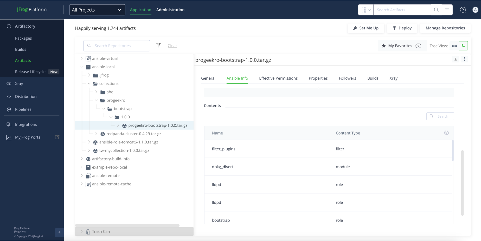 With Artifactory, you can manage Collections – including Roles – in your Ansible Repositories: