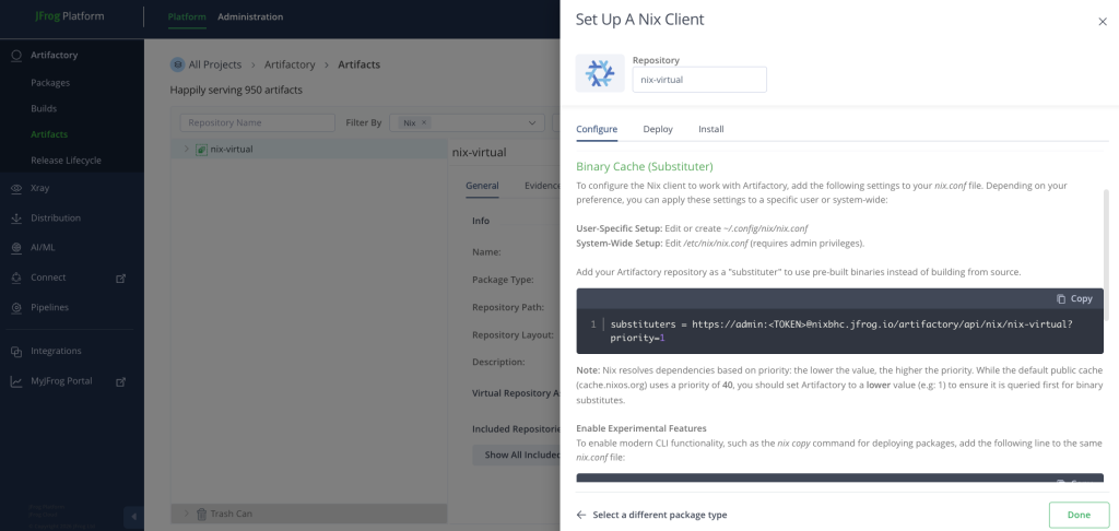 Today, we are changing that. We are thrilled to announce Native Nix Repository support in the JFrog Platform, making Artifactory the ultimate enterprise-grade registry for Nix.