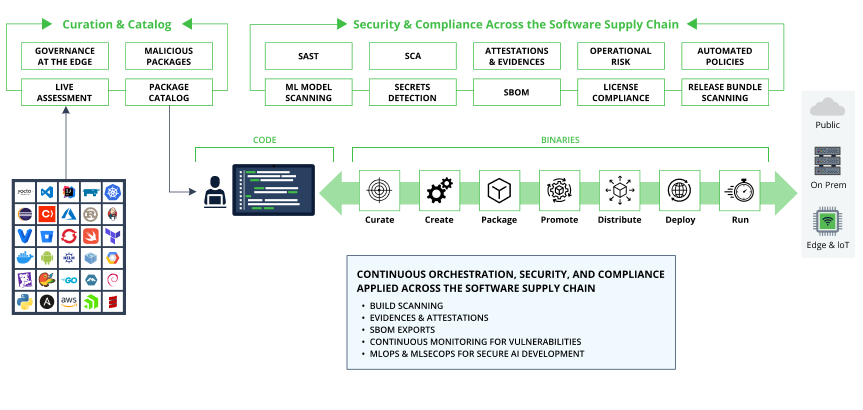 - Secure by Design: Integrate security considerations throughout the SDLC. This could involve threat modeling, secure coding practices, vulnerability scanning, code reviews, static code analysis, secure package curation, and dependency resolution.
