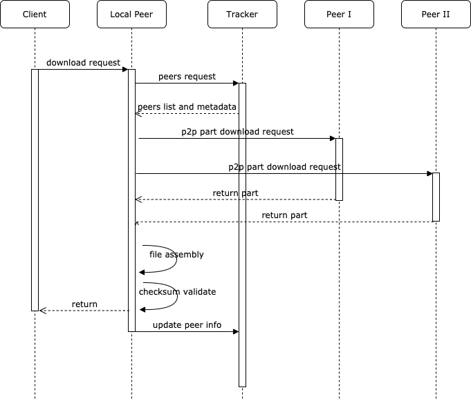 - As the local peer download files on behalf of a client, and assemble the files and validate the checksum. The peer then regularly posts information about pieces of their stored files to the tracker serving Artifactory. The tracker stores this information.