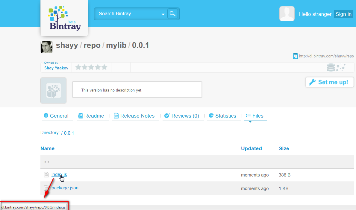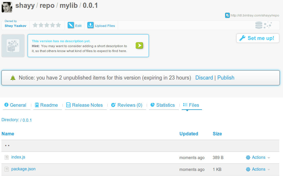 >> Deploying files to ‘https://bintray.com/shayy/repo/mylib/0.0.1/files’
