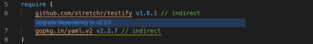 Let’s walk through a brief example of a test file using testify and yaml/v2 Go modules to see how vulnerability scanning helps.