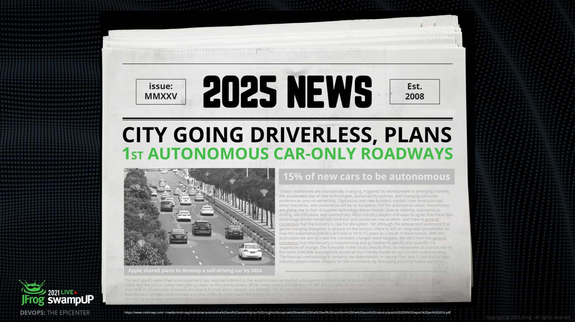 With software firmly at the heart of how we live and work, DevOps is no longer confined within the boundaries of IT. A year ago at swampUP 2020, we boldly predicted that every company would become a DevOps company. Well, it turns out our prediction wasn’t so bold after all because it quickly became true — and then some. We’re way past that point now. DevOps has become the epicenter of the world. And developers are at the center of DevOps, driving global innovation.