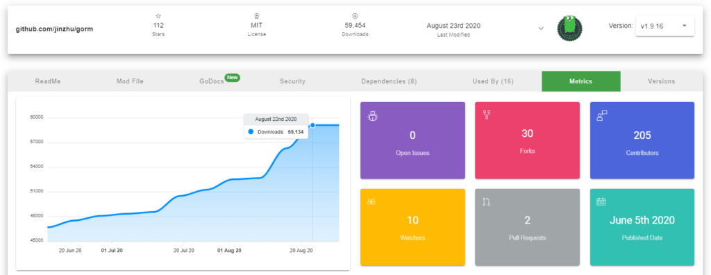 - GoCenter’s Used By and Metrics tabs show that this module is popular and broadly trusted, with many downloads, forks, contributors, and usage by other Go modules.