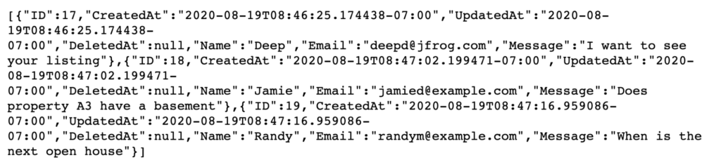 Then using go run main.go, we’ll see the response: