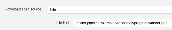 To specify a JSON file as the file spec source simply add the path to the file, relative to the workspace. In the example below, “props-download.json” will be used.