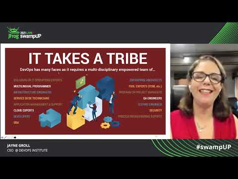 Everyone, I’m Jayne Groll, CEO of the DevOps Institute and I’m delighted again to be a presenter at JFrogs annual SwampUP, I think this is my third year presenting. So I’m always grateful for the opportunity to speak, particularly because my area that I like to speak about is humans. And so today we’re going to talk about DevOps for humans, I’ll share a little bit of insight from some of the research that DevOps Institute has been doing about upscaling and really sharing some market insight into what we know about the importance of human transformation as related to digital transformation and DevOps.