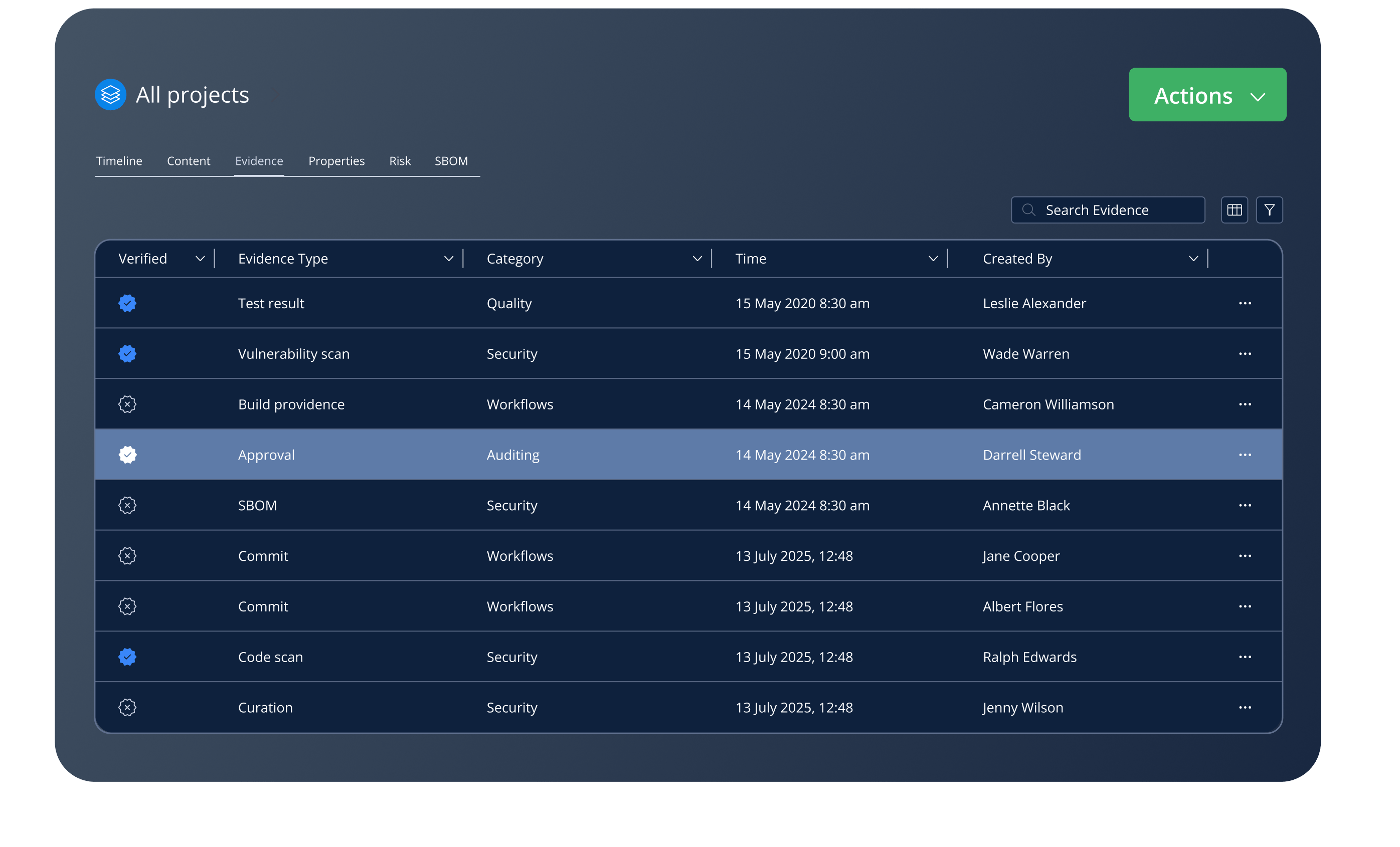 Tirez parti de la collecte automatisée de preuves pour une traçabilité et une attestation vérifiables sur l'ensemble du cycle de développement logiciel, tout en réalisant des versions fiables et conformes, avec une sécurité des applications démontrable à grande échelle.