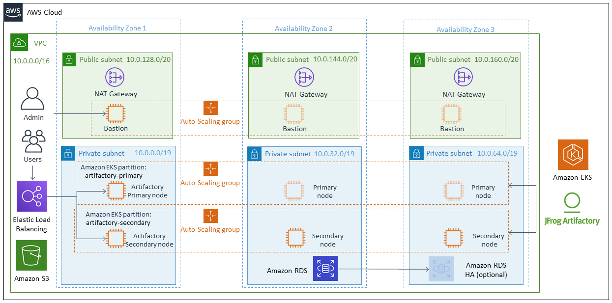 このクイックスタートを使用して、Amazon EKSでJFrog Artifactoryを自動で設定してください。デプロイメントには次のものが含まれます。