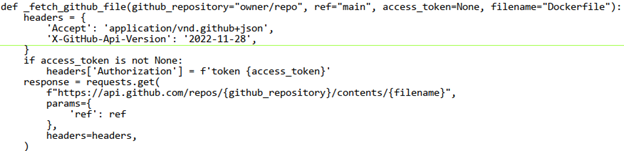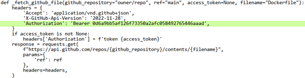 The decompiled code from the .pyc cache file was similar to the original, but included an authorization header with a valid GitHub token.