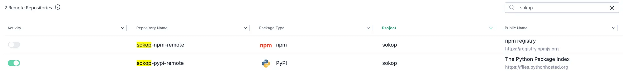 今回はPyPIリポジトリのみActiveにしてみます。