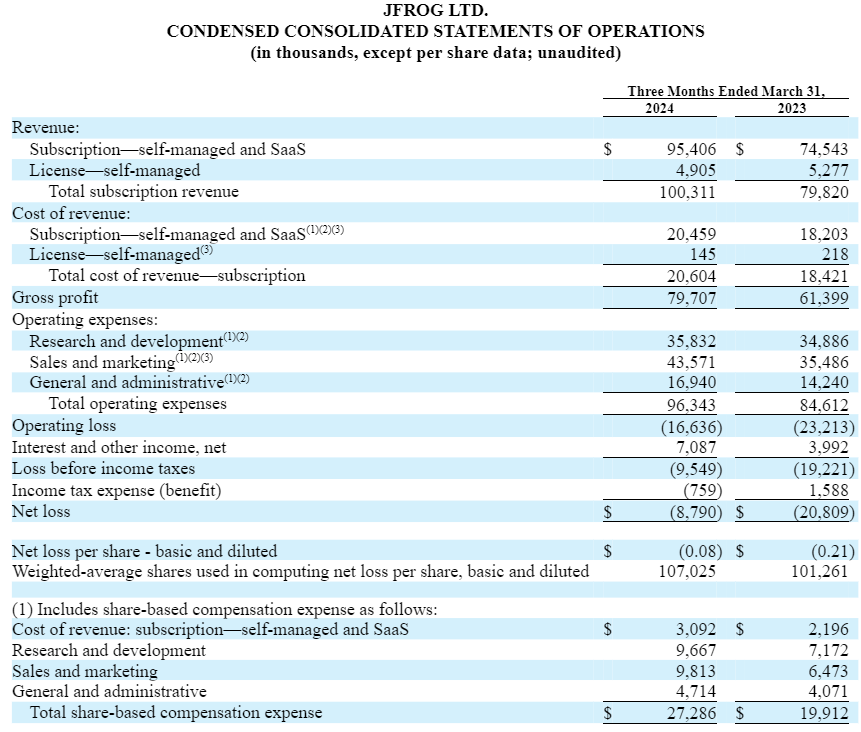 JFrog Announces First Quarter 2024 Results