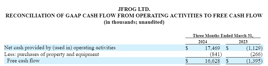 Additionally, JFrog’s management believes that the non-GAAP financial measure, free cash flow, is meaningful to investors because management reviews cash flows generated from operations after taking into consideration capital expenditures due to the fact that these expenditures are considered to be a necessary component of ongoing operations.
