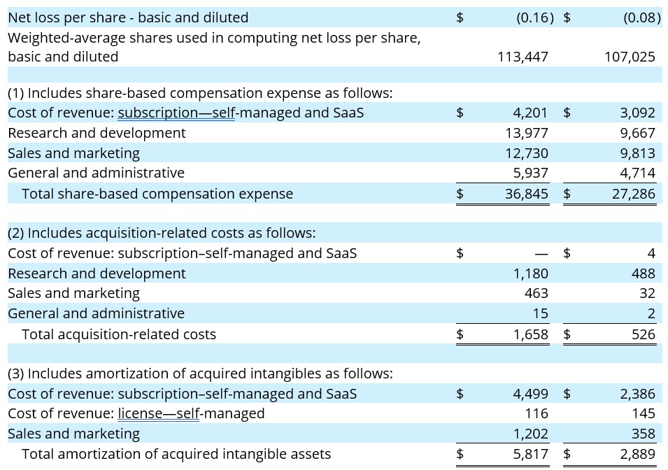- Customers with greater than $100K ARR increased to 1,051, compared with 911 in the year-ago period.