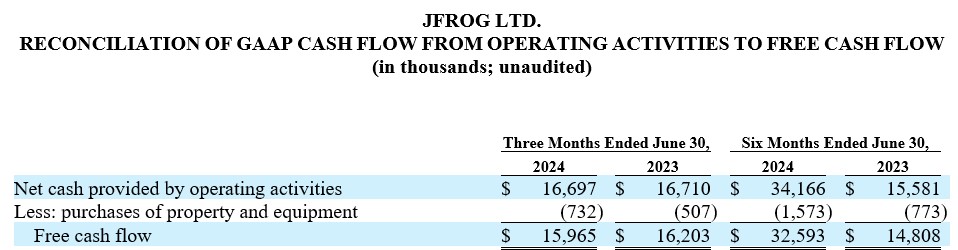 Additionally, JFrog’s management believes that the non-GAAP financial measure, free cash flow, is meaningful to investors because management reviews cash flows generated from operations after taking into consideration capital expenditures due to the fact that these expenditures are considered to be a necessary component of ongoing operations.