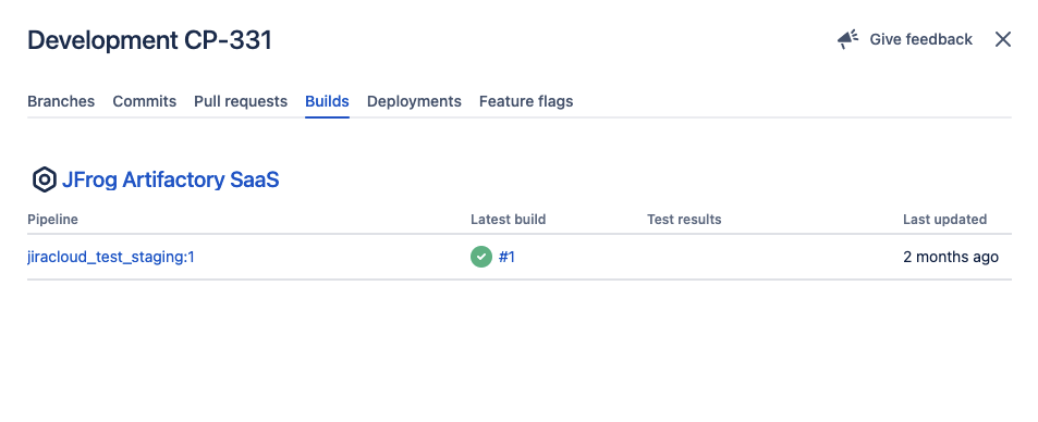 - View an issue in Jira, and you can see which builds in Artifactory have the fix, and click one to view it in Artifactory, where you can download the artifacts.